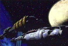 Here is the Cortez again, but this time park outside of Babylon 5. A Great shot showing how big this ship is.