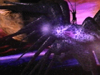 Shadow Fighter that seems to confuses the attacking ship into what one to fire at. These ships almost seems to repair each other if one has been damage, but this normaly happens after they have won a battle, when this happen, and undamage ship laches on to the damgae one and a blue color washes the damage one. The skin of the ship is black and shining when it hits a point of light. This the skin of this ship looks pretty, but is deadly, if touched by another living things with anytype of protection the person will die, and to a doctor who saw it happen, " Die as if he life was tooken out of him", but this raise a question if it so deadly to a living things, than why do they used living things to power their ships? So it rasie the though that it must be safe for a living thing to be inside of the ship, but not outside of it. It also could be the empaltes that were put their heads to help proctect them when they were inside of the ship. This black skin of the ship is also great as a shilden because it can take in many energy from weapons that are from the younger race's.